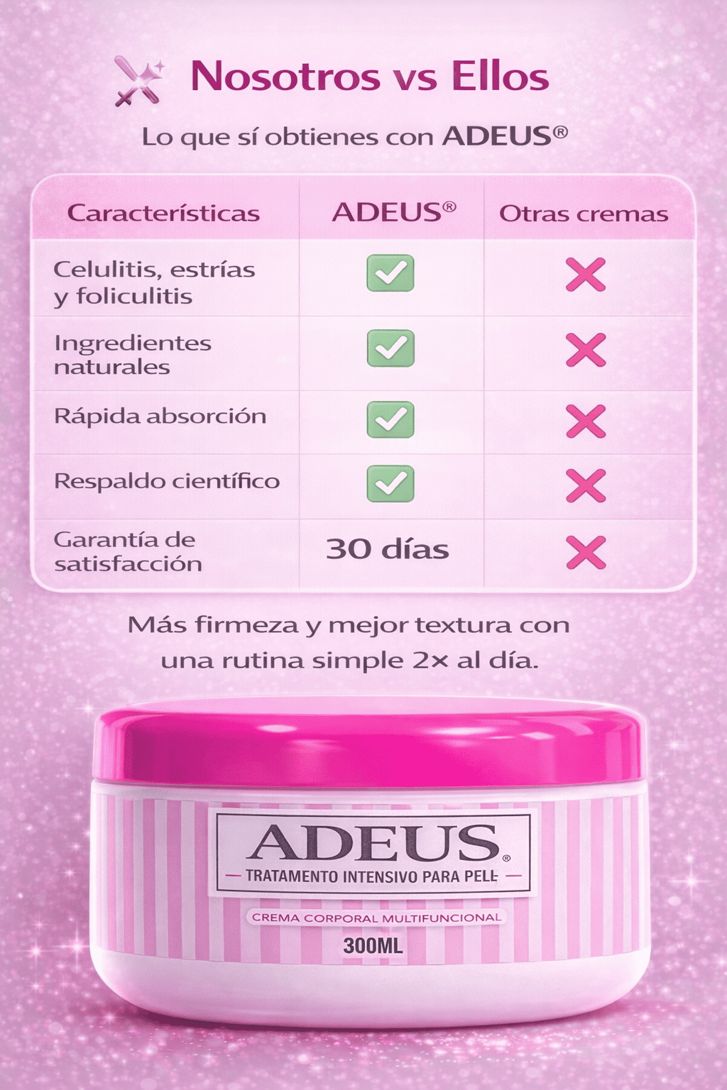 Esta no es una crema más: es el inicio de un cambio real que se nota en tu cuerpo y se siente en tu autoestima.